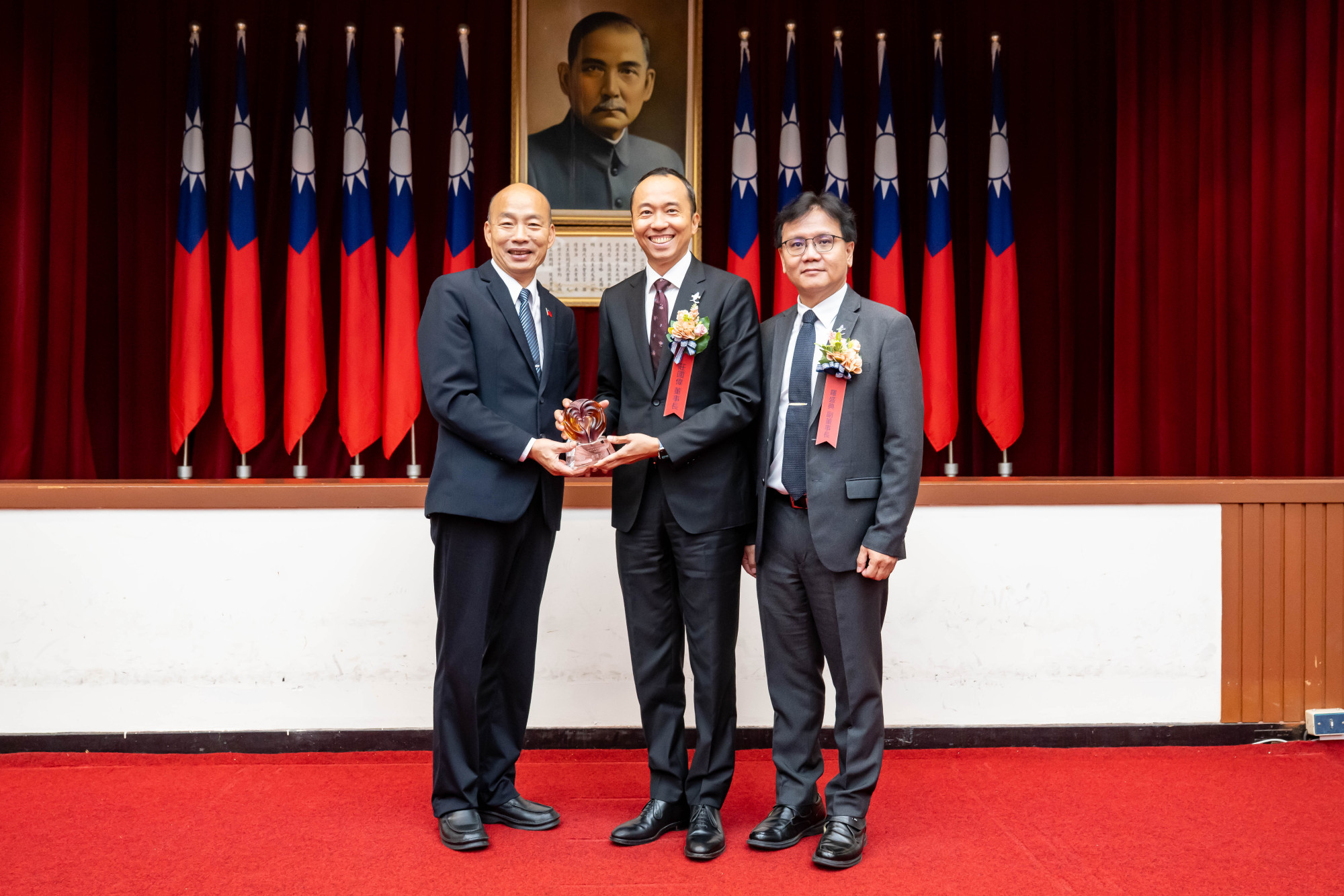 立法院韓國瑜院長頒發紀念獎盃予癌症希望基金會莊國偉董事長、羅盛典副董事長