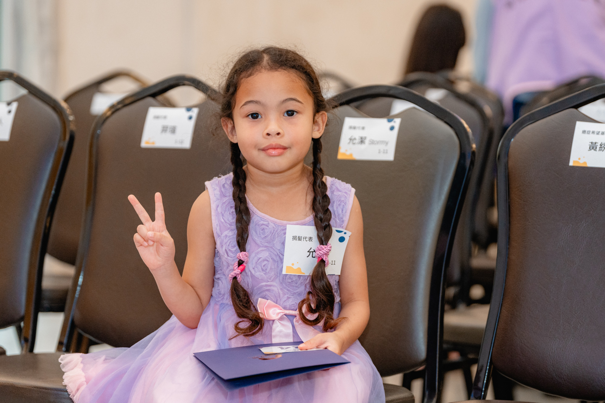 留著一頭公主般長髮的 4 歲允潔是台美混血兒,因看著外公罹患肺癌住院治療,決定勇敢捐出長髮為外公祈福。雖然剪下長髮有些不捨,但她更希望透過善舉為外公加油打氣。來自台東的羿瑄則是在學校老師的宣導下,了解頭髮可以幫助癌友重拾自信後,便默默留起長髮。羿瑄的父親得知女兒有這份善念,不僅全力支持,更親自開車載她從台東遠赴高雄完成捐髮,以行動力挺女兒的善舉。